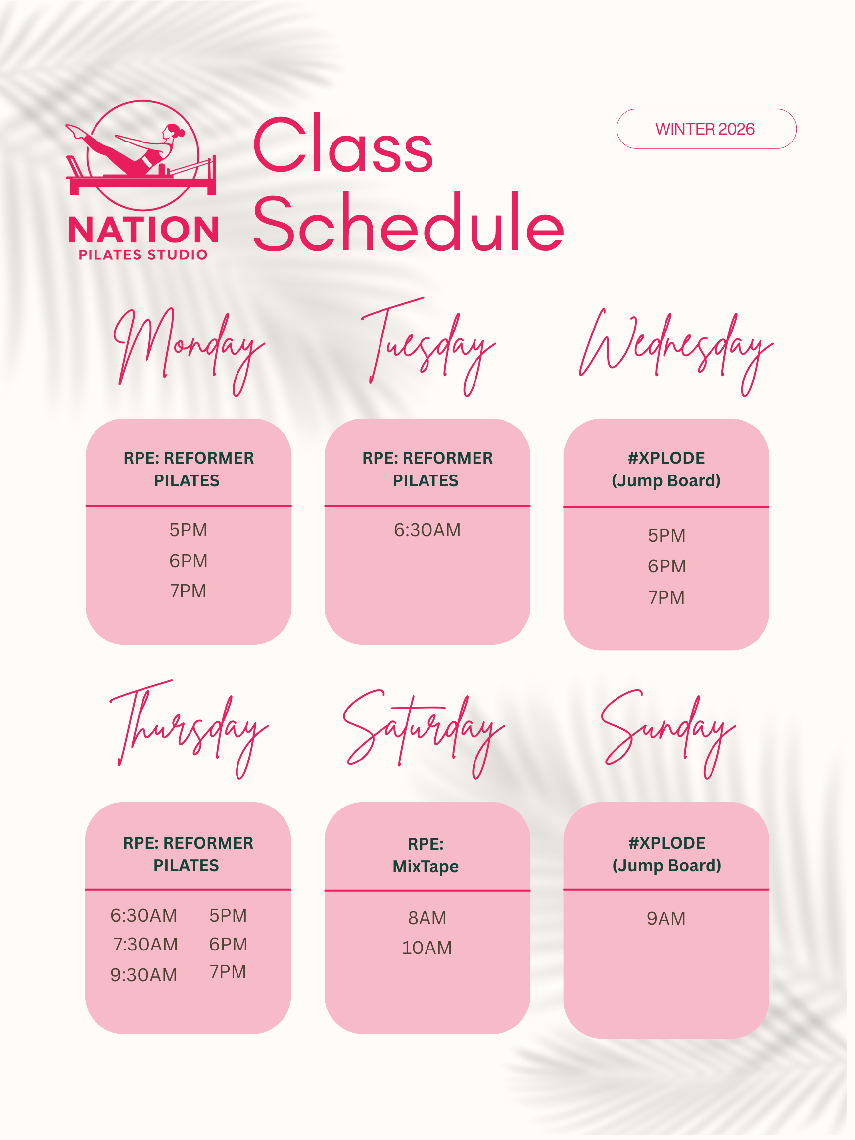XPLODE is a 45-minute Reformer Pilates Experience (RPE) session including on and off the Reformer movements, focusing on power and plyometrics as well as core stabilization and mobility. Although we don’t actually consider this a true Pilates class, we do take elements from Pilates’ methodology and apply it to our signature Reformer HIIT- Style session.